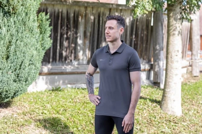 Рубашка-поло изготовлена из переработанной функциональной ткани, которая не только удобна в носке, но и полезна для окружающей среды.