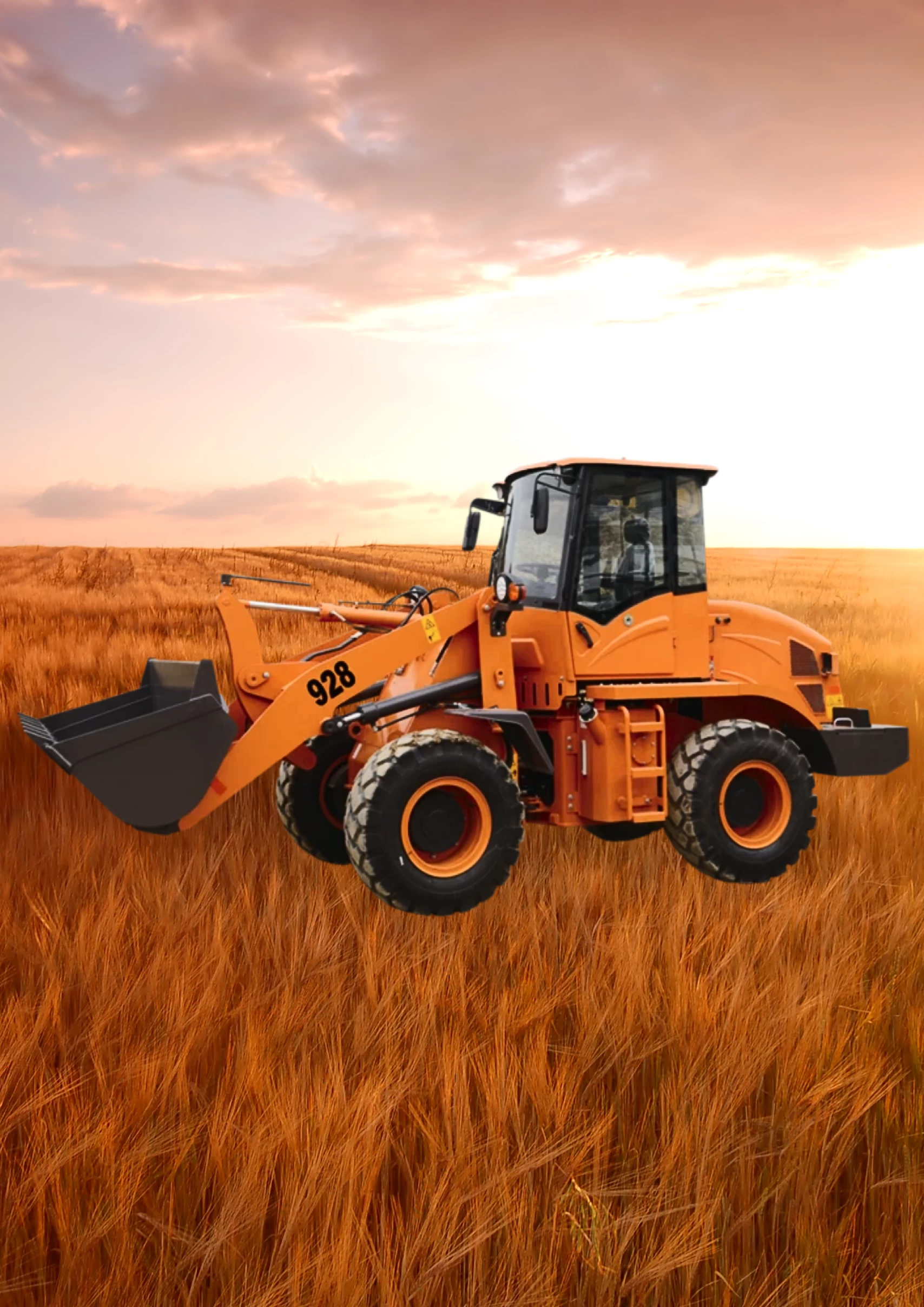 Колесный погрузчик 928 имеет 4-привод на колеса, все оси и насосы отечественного производства, произведенные на первоклассных заводах в Китае. Шарнир между передней и задней частью.