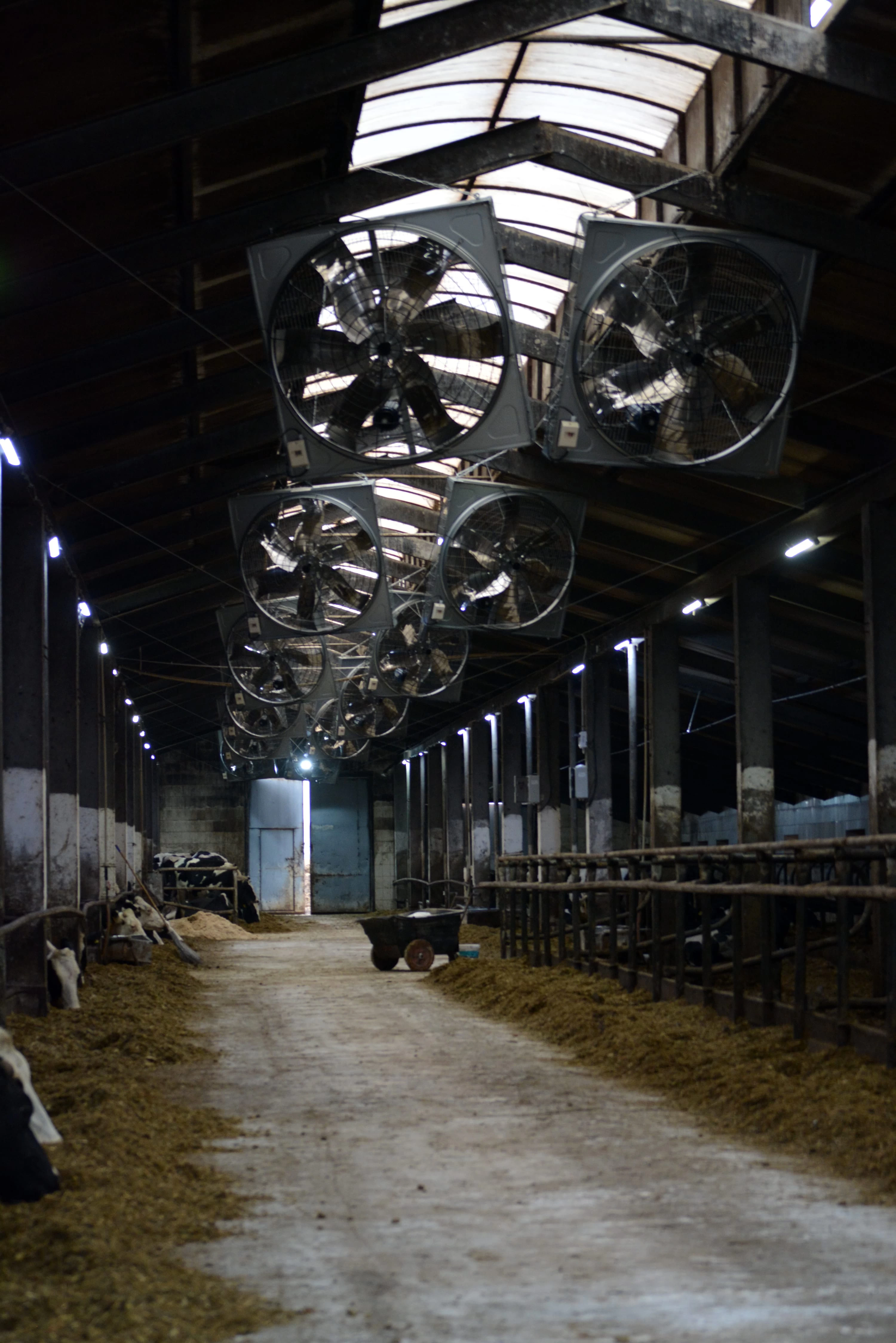 В проекте на молочно-товарном комплексе СХК "Великополье" была реализована установка 12 вертикальных вентиляторов и системы охлаждения туманом, что значительно улучшило климатические условия в помещениях для содержания скота и повысило продуктивность животных.