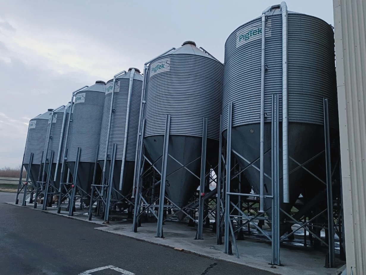 Бункер для хранения корма позволяет эффективно организовать процесс кормления, обеспечивая доступ к свежему и качественному корму в любое время. Он спроектирован с учетом всех необходимых норм и требований, что способствует оптимизации процессов на комплексе и повышению общей производительности.